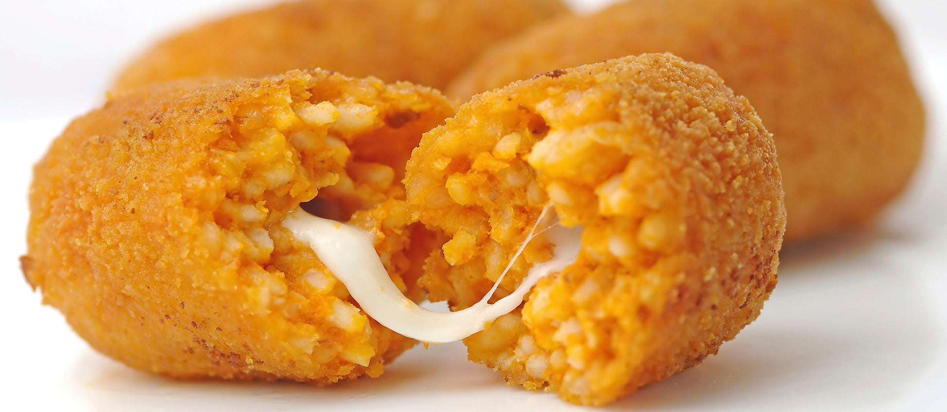 Una vera icona dello street food romano, queste crocchette di riso fritte e dorate rivelano un cuore di morbida mozzarella racchiuso in un saporito riso al pomodoro. Croccanti all'esterno, irresistibilmente morbide all'interno: ogni morso è un assaggio di tradizione.