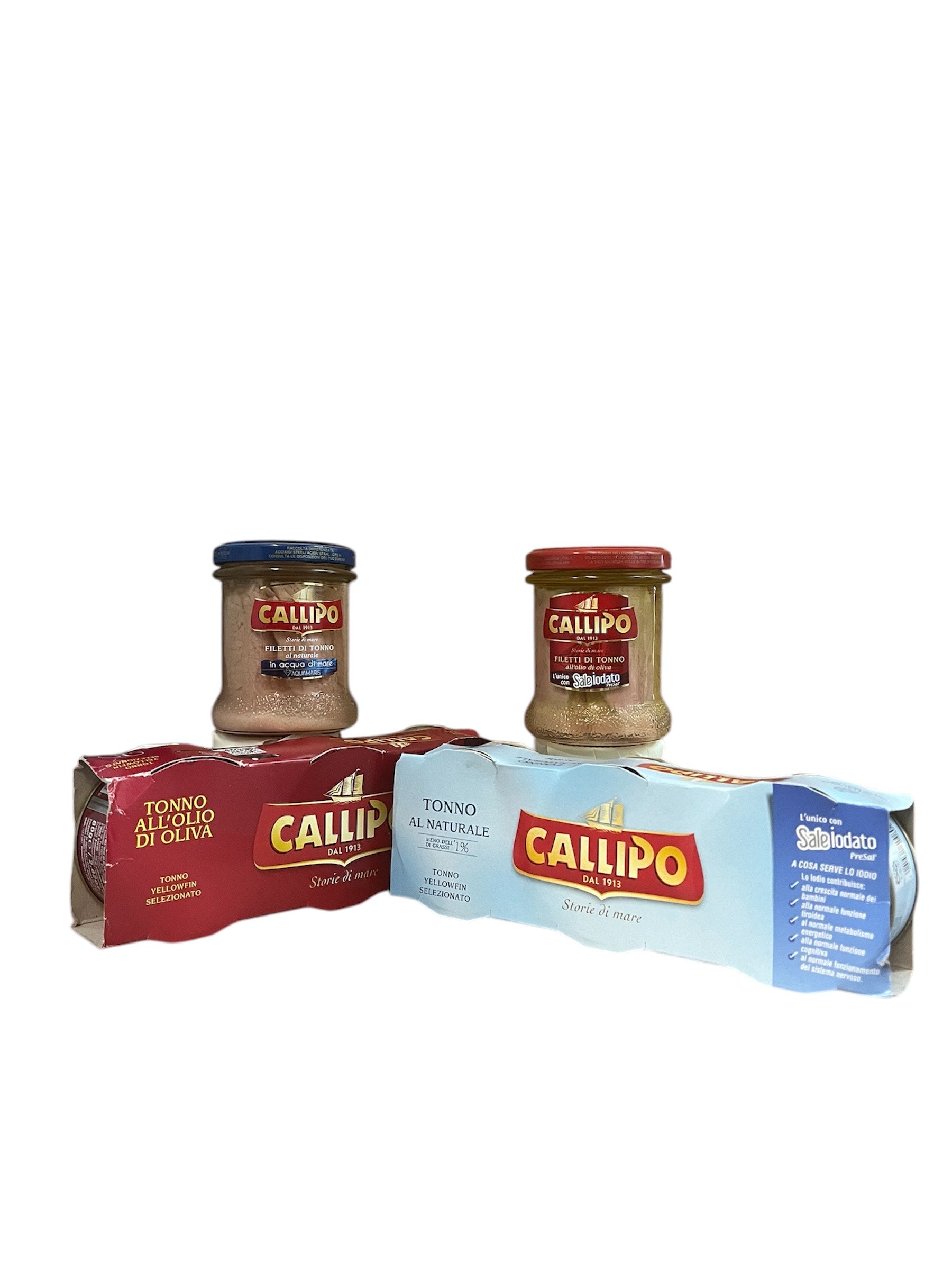 Enjoy the taste of the Mediterranean with this premium tuna combo from Callipo. Includes fillets in olive oil and brine, plus canned tuna in both classic and natural versions. A seasonal essential for light salads, pasta, or aperitivo dishes with an Italian twist.